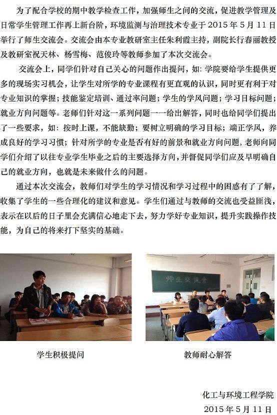 yl23411永利环境监测与治理技术专业举行师生交流会