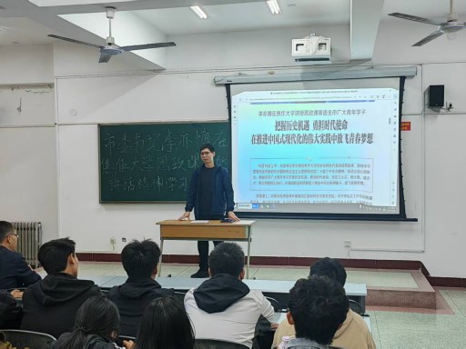 李亦博在思政课上强调,青年学子要把握历史机遇,勇担时代使命,在推进中国式现代化的伟大实践中放飞青春梦想。