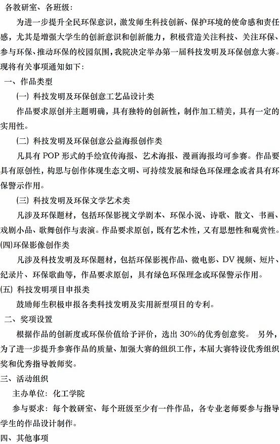 关于举办yl23411永利第一届科技发明及环保创意大赛的通知