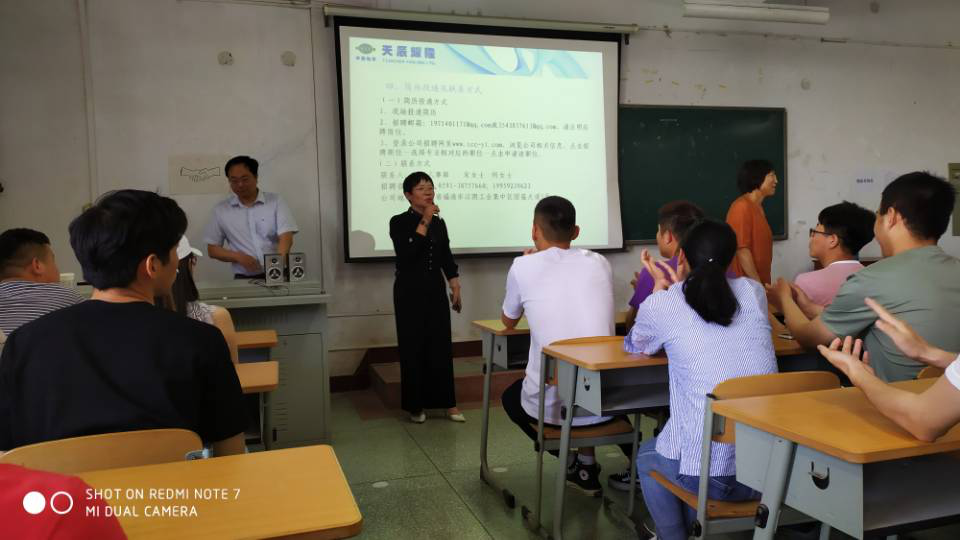 公司团总支书记向企业家的到来表示欢迎和感谢,并向用人单位简单介绍了公司今年毕业生的情况。之后,企业负责人从公司概况、企业文化、企业员工培养模式、企业目前的发展状况及发展前景与同学们作了详尽的说明。在宣讲会的互动环节,同学们就自己所关心的专业对口问题、企业所需求的人才素质要求问题、公司发展平台与机会等问题与用人单位进行了交流,并得到认真解答,用人单位希望有更多的毕业生能够选择本企业去建功立业,去实现自身的价值。