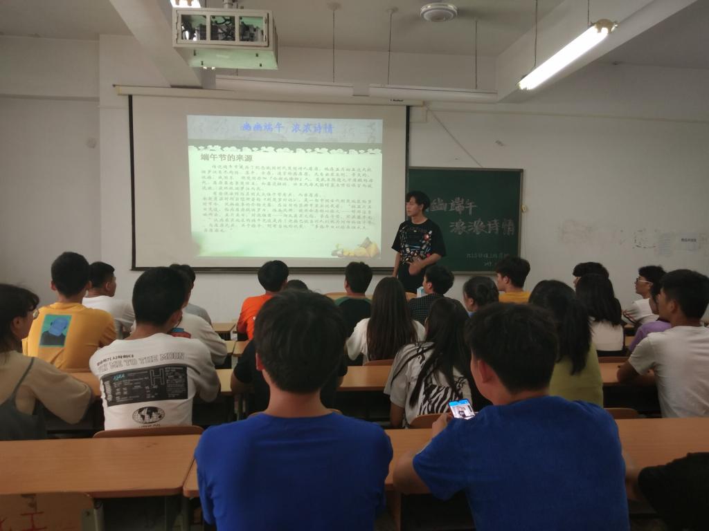 班会中,班长向同学们讲述了“端午节”的由来以及爱国诗人屈原、曹娥、伍子胥的故事,激发员工的爱国热情与民族情怀;又提到端午节的习俗,赛龙舟、端午食粽、佩戴香包、挂艾叶菖蒲以及端午节人们栓五色丝线等习俗。