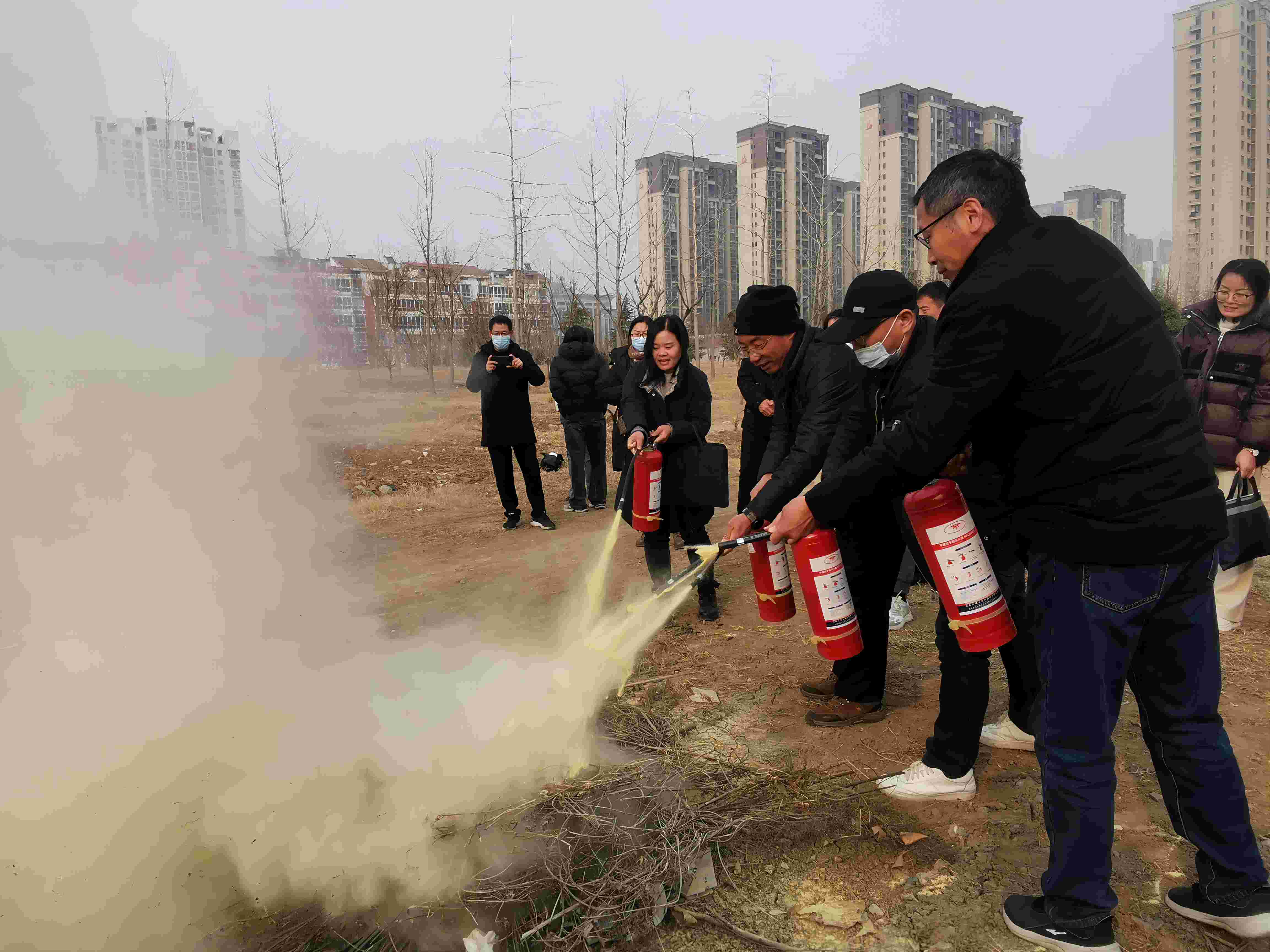 演练活动在室外空旷地带并有序开展,yl23411永利全体人员牢记消防器材的正确使用要领,按照培训要求,依次进行灭火器材的实操演练,做到临危不乱、处置得当。大幅提升了教职工安全消防技能和提高了安全防范意识。