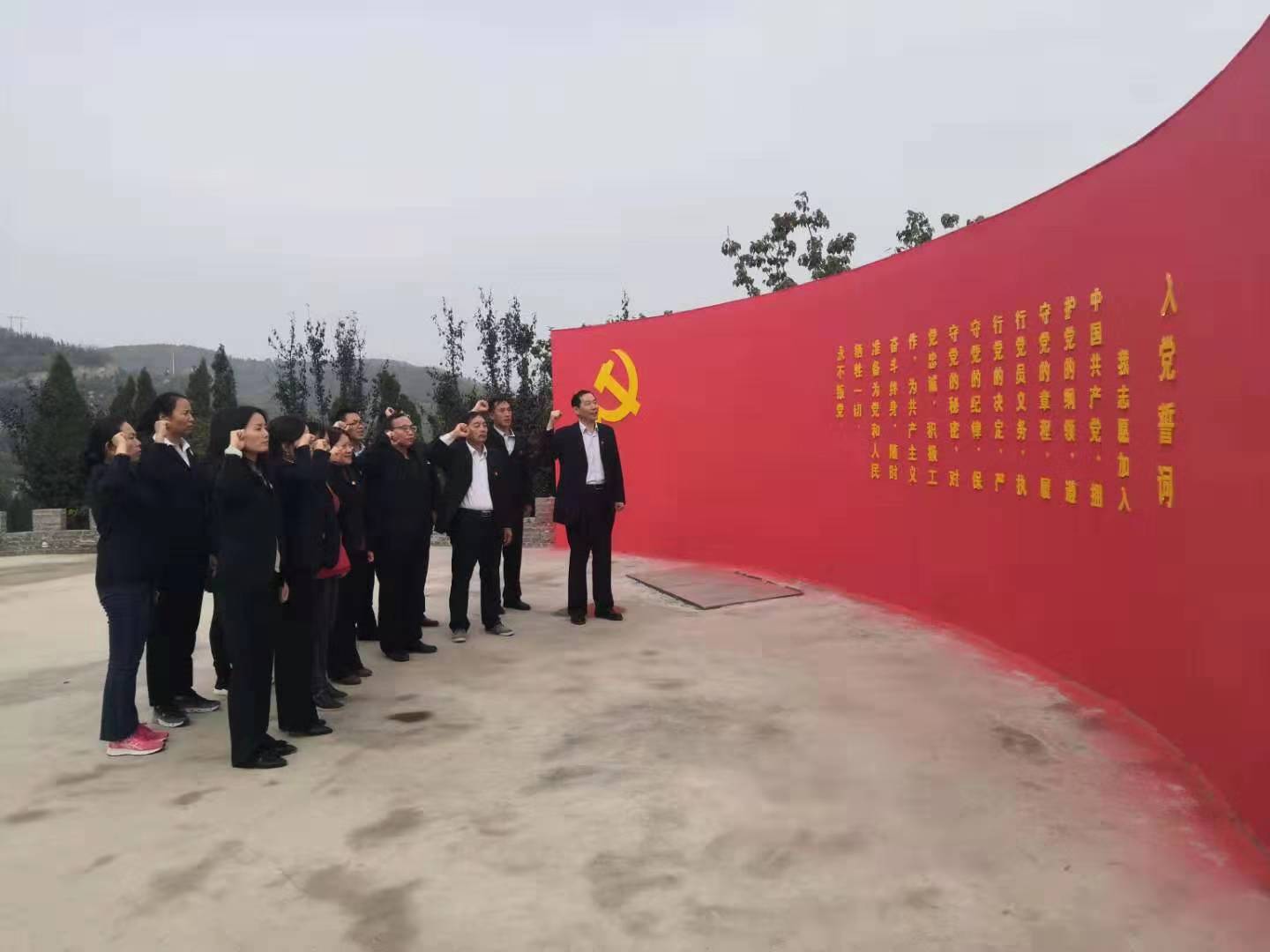 党总支书记田京城、经理苏永祥带领着全体党员,在十二会工作人员的带领下,参观了基地的五个革命基地,了解了焦作的革命史,重温了入党誓词!