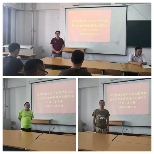 “七一”前夕(6月29日下午),经理苏永祥以《学习贯彻习近平总书记全国教育大会重要讲话精神》为主题为公司教工党员讲授党课,苏经理紧紧围绕习近平总书记讲话中的“九个坚持”的重要价值和科学内涵,全面阐释了习近平新时代中国特色社会主义思想关于教育的重要组成部分,是中国特色社会主义教育理论体系的思想指南,是中国特色社会主义教育实践的行动纲领。苏经理指出:作为一名教育工作者,如何在工作岗位上做到习近平总书记的讲话要求,首先就是要理解好、贯彻好习近平总书记的讲话精神,并付诸于工作中,作为一名教师党员,都必须学政治、懂政治、讲政治,担负起立德树人的时代重任,培养出一代又一代又红又专的社会主义建设者和接班人。