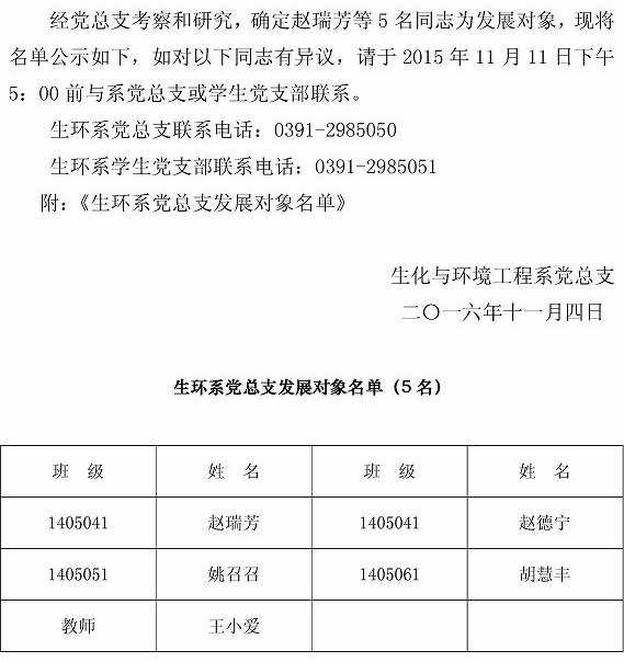 2016下半年关于确定发展对象的公示