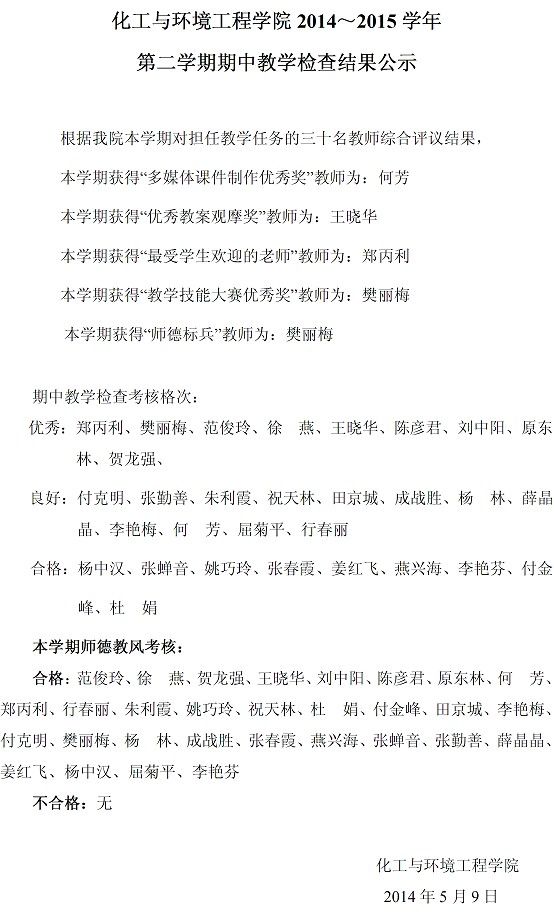 2014-2015-2第二学期期中教学检查结果公示