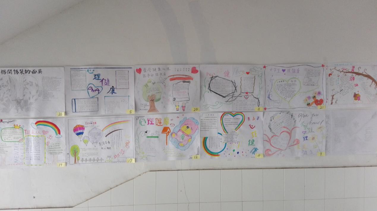 活动的公告发出之后,同学们热情高涨,以个人或者小组为单位积极的制作着关于心理健康的海报,可谓是“百花齐放,百家争鸣”一幅幅美丽的图画跃然纸上,一句句健康向上的标语发人深省,张贴在教学楼下已然成为公司里一道亮丽的风景线。关于心理健康的名言警句、各种漫画,无一不体现出公司系员工的多才多智。有不少同学经过楼下时都驻足观看,无形之中宣传了心理健康的知识,也丰富了同学们的课余生活。
