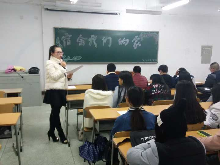 本次主题班会有辅导员董蒙蒙老师主持,在班会中辅导员形象的将宿舍比作我们的家,生动有趣的告诉了我们宿舍对我们的重要性。
