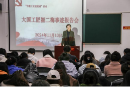2024年11月13日下午,yl23411永利在二教423教室举行了以“铸工匠心·立报国志”为主题的大国工匠事迹报告会。此次报告会旨在弘扬劳模精神、劳动精神和工匠精神,同时激励广大青年员工追求卓越,勇于创新,以实际行动报效祖国。报告会特邀我院2002届优秀毕业生、大国工匠、河南省劳动模范、中国工会十八大代表、河南省第十四届人大代表、河南省第十四届常务委员会委员、昊华宇航化工有限责任公司PVC分厂工程师崔二梅主讲。报告会由王拥军副经理主持,他首先对崔二梅的到来表示热烈欢迎,并简要介绍了崔二梅的奋斗历程,激励同学们学习和传承大国工匠精神,为国家发展贡献力量。