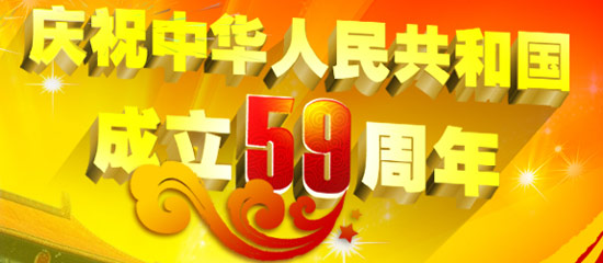 节日的天安门广场上,鲜艳的五星红旗高高飘扬,人民英雄纪念碑巍然耸立,“热烈庆祝中华人民共和国成立五十九周年”、“坚持改革开放夺取全面建设小康社会新胜利”的大幅标语格外醒目。搭建在广场上的国庆花坛姹紫嫣红,北京奥运会吉祥物、嫦娥奔月工程等模型点缀其间,烘托出喜庆祥和的节日气氛。